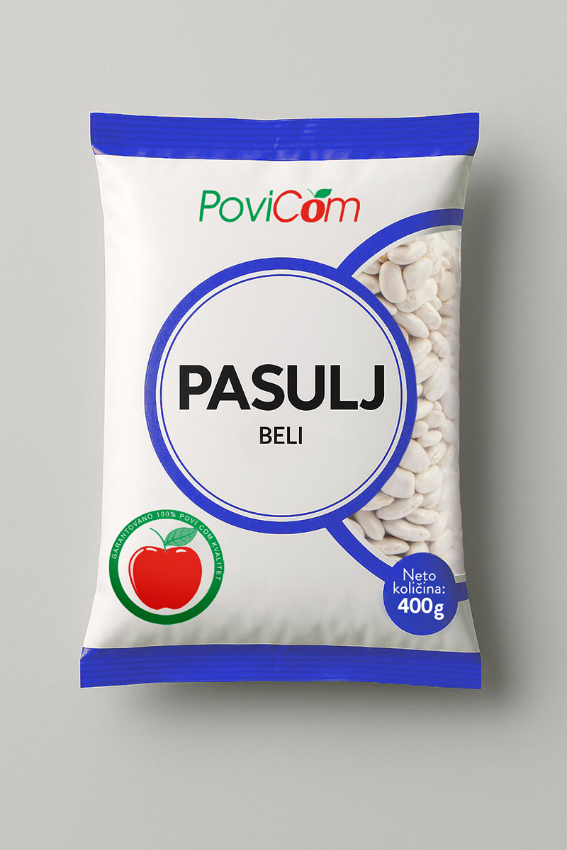 Beli pasulj u pakovanju od 400gr – sadrži puno proteina i vlakana, idealan za variva, čorbasti i tradicionalni pasulj na tavče. Preporuka: potopiti u vodi nekoliko sati pre kuvanja za brže i ravnomernije kuvanje.